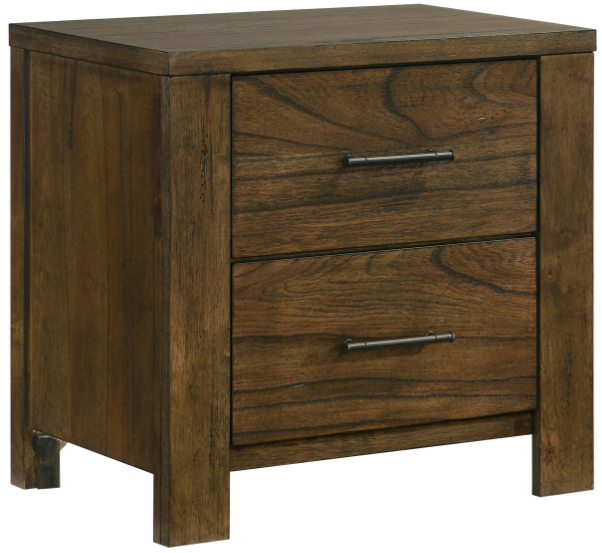 Expanding the functional storage space in your bedroom, the Sullivan Collection provides ample drawers and shelves to achieve your desired bedroom design. The wire-brushed oak finish over mindy veneer lends subtle rustic aesthetic to the nightstand while dark brown metal bar hardware provides complementing accent to the drawer fronts.Read More