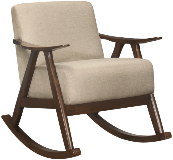 The frame of the Waithe Collection recalls a time when simplicity of profile was the height of style. The streamlined design of the rocking chair features subtly sloped wood arms, legs and rails that are finished in dark walnut, serving to highlight the brown velvet seat covering.Read More