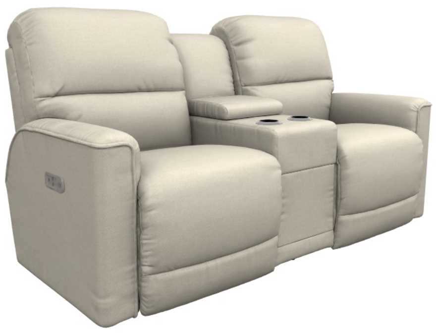 The La-Z-Boy® Cade power reclining loveseat with headrest, lumbar, and console offers modern comfort and convenience. Upholstered in durable fabric, it features dual power recliners, plush cushions, and adjustable headrests for personalized support. A center console with storage and cup holders adds functionality, making it a stylish, versatile addition to any living space.Read More