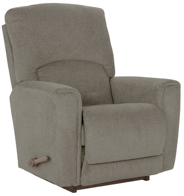 Lush casual comfort has a refined design in the Cassian rocking recliner. Gently padded tapered arms border a cushy back with an inset lumbar cushion. A smooth chaise seat and leg rest lift and the back reclines for lounging. Or simply rock and relax.Read More