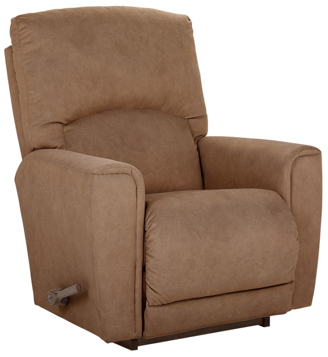 Lush casual comfort has a refined design in the Cassian rocking recliner. Gently padded tapered arms border a cushy back with an inset lumbar cushion. A smooth chaise seat and leg rest lift and the back reclines for lounging. Or simply rock and relax.Read More