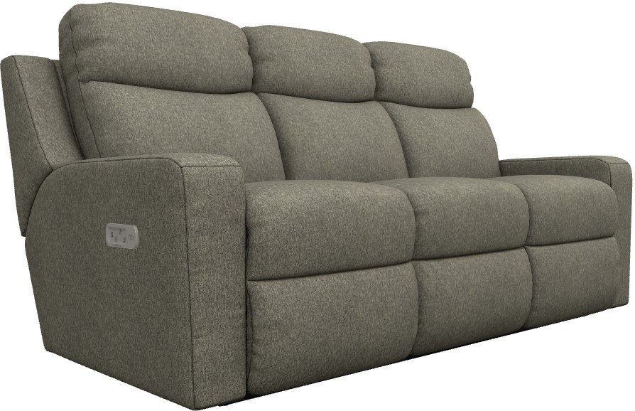 The bold track arms and exposed wings of the Emmons power reclining sofa with headrest and lumbar add a linear edge to cozy, laid-back comfort. Tall, cushy backs and smooth chaise recline offer fully adjustable support in the outer seats.Read More