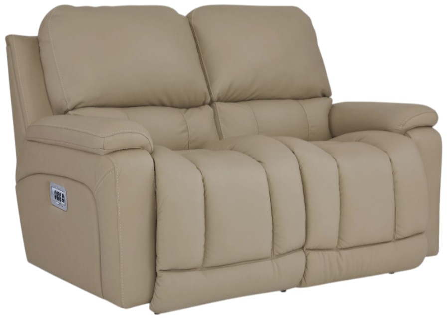 Plush curves and sleek lines add sumptuous contemporary style to the Greyson Power Reclining Loveseat with Headrest and Lumbar. Pillowed arms highlight bold channeled bucket chaise seats and deep backs that offer head-to-toe power-adjustable comfort.Read More