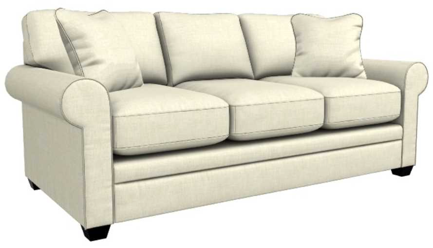 Rolled arms, decorative wood legs and welt trim lend laid-back sophisticated style