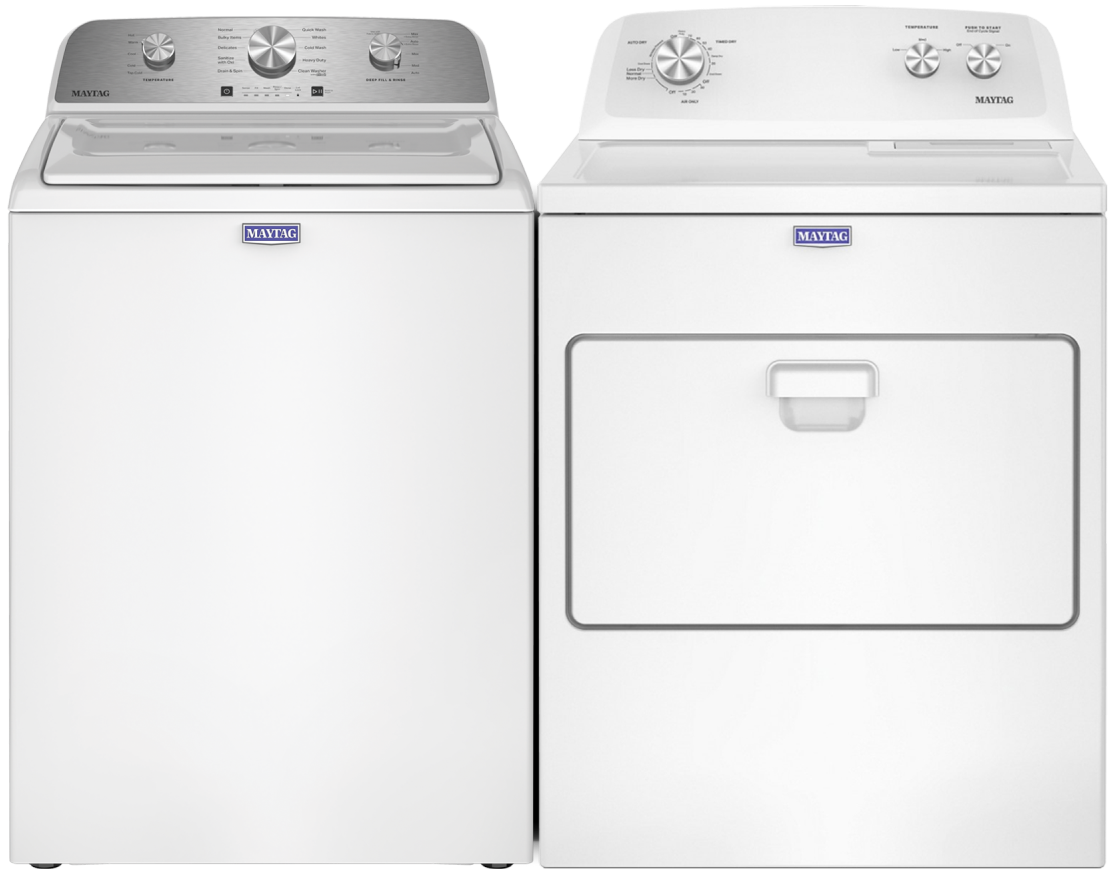 Maytag® White Laundry Pair with 4.2 Cu. Ft. Top Load Washer and 7 Cu. Ft. Front Load Electric Dryer.Read More