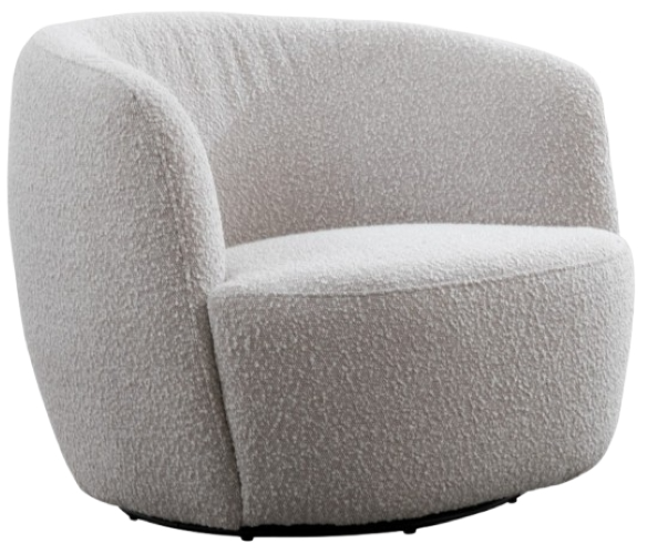 This swiveling accent chair updates your living room with a playful, modern look. It's made with a kiln-dried solid pine wood frame with a streamlined barrel silhouette. The design features a curved back with foam padding and a seat bolstered with sinuous springs, wrapped in polyester fabric in a neutral hue.Read More