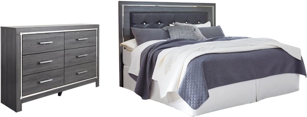 Reminiscent of Hollywood glamour of yesteryear, this bedroom set with king/California king panel headboard and dresser interprets luxury in a decidedly modern way. Headboard details include button-tufted upholstery, faceted faux crystals and LED lights enhanced with remote-controlled settings for color and brightness.Read More
