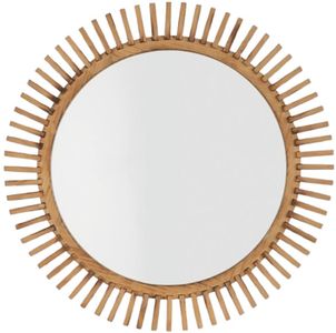 Brighten your space with this contemporary accent mirror. Its warm brown wood sunburst design offers organic texture and visual interest galore. Hang it as a statement piece, or pair it with other decorative elements for a curated look.Read More