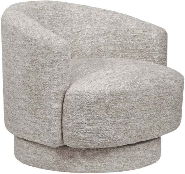 Relaxation meets refinement in this accent chair. With an ultra-soft fabric in a crisp, light neutral, it invites you to curl up in comfort. A 360-degree swivel provides added versatility. Drape a throw blanket over the back, or add an accent pillow for a pop of color with this chair, the possibilities for cozy-contemporary style are endless.Read More